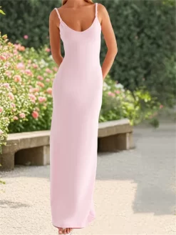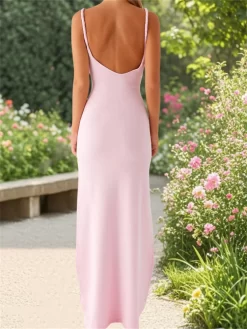 Women Sleeveless Long Dress Summer Solid Color Twisted Straps V-Neck Backless Party Dress for Vacation Beach Streetwear